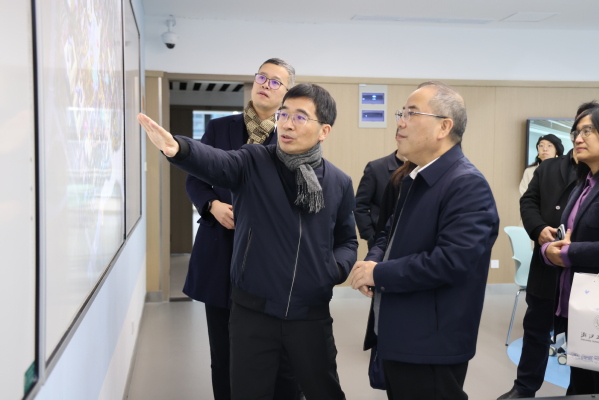 郁建兴一行实地考察了博学楼智慧教室、图书馆、南浔特色文化馆、数智中心等,了解了南浔校区总体建设及运行情况。
