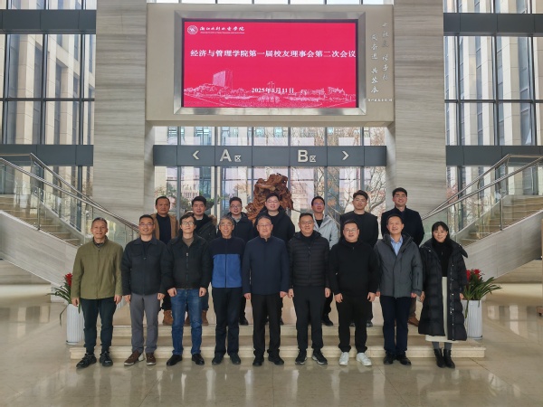 近日,经管学院第一届校友理事会第二次会议在钱塘校区教学科研综合楼 608 会议室顺利举行。第一届校友理事会全体成员汇聚一堂,共同探讨学院与校友合作发展新路径。经管学院全体领导班子参加会议。