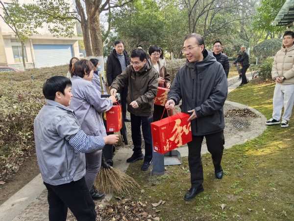 新春佳节即将到来,校党委书记钱天国、校长万健一行于1月22日走访钱塘校区、南浔校区,看望慰问寒假留校一线工作人员,并开展校园安全、后勤保障等工作检查。党委副书记吴小英陪同走访慰问。办公室、工会、安保部、后勤中心、南浔办等部门负责人参加走访。