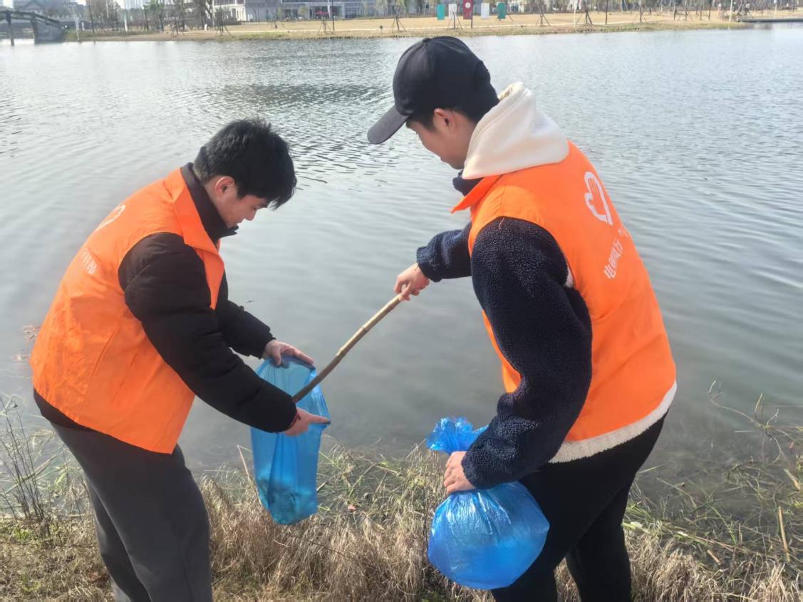 近日,电气学院青协志愿者们分组行动,在南浔校区沿求实楼附近的水岸展开清洁活动。他们手持垃圾夹,仔细清理河面漂浮的垃圾和杂物,并分类处理垃圾。参加活动的志愿者说:“此次清理活动,让我意识到呵护河湖、保护水环境不是口号,就在我们日常生活习惯中。”