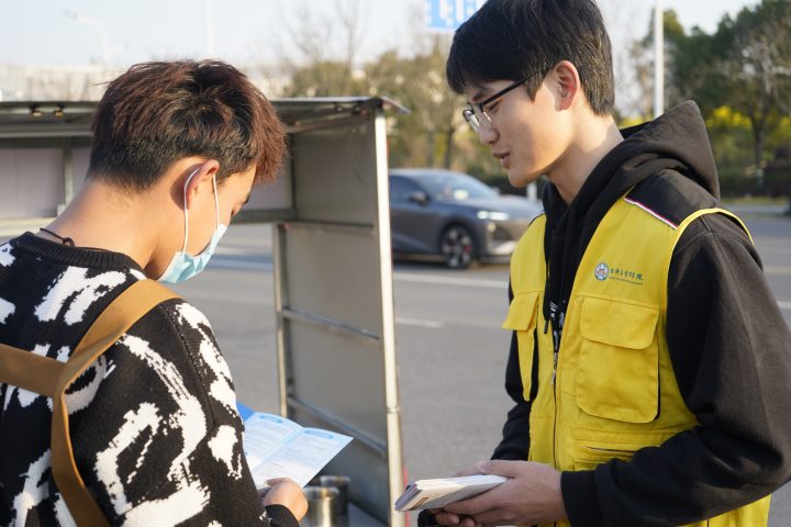 此外,大学生们还积极走向街头,向居民们发放宣传册宣讲水法知识。