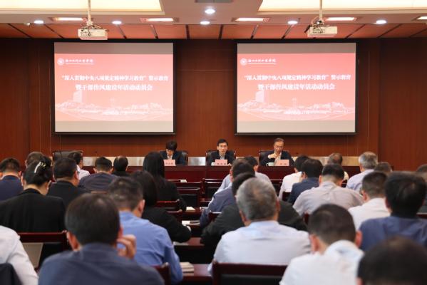 会议指出,为深入学习贯彻习近平总书记关于党的建设的重要思想和关于加强党的作风建设的重要论述,深入贯彻中央八项规定及其实施细则精神和我省办法,学校党委决定在全校中层领导人员和广大干部中开展“干部作风建设年”活动,着力解决当前干部队伍中存在的作风问题,从严从实从细抓好作风建设,大力弘扬“六干”作风,打造一支讲政治、敢担当、善作为、清正廉洁、勤勉高效的高素质过硬干部队伍,为持续推动学校事业高质量有特色发展、全面建设高水平应用型大学提供坚强的干部队伍支撑。