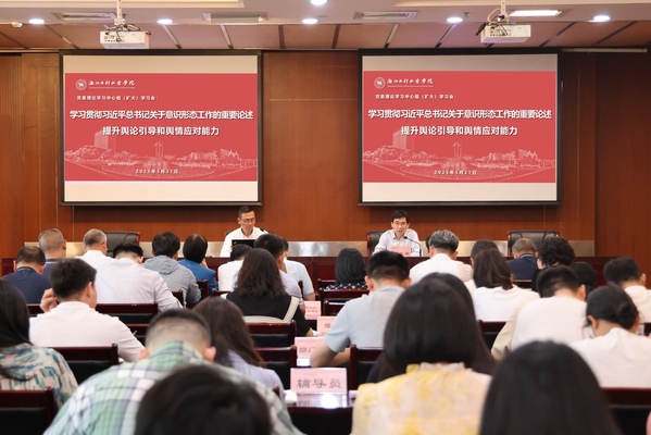 5月21日,校党委书记钱天国主持召开学校党委理论学习中心组(扩大)学习会,专题学习舆情应对与防范意识形态风险工作。浙江省教育宣传中心党委书记、主任,浙江教育报刊总社社长、总编辑薛平作《教育舆情态势分析与管理》辅导报告。