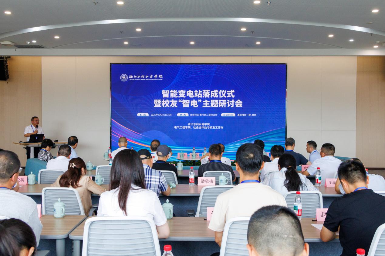 会上,罗云霞与校友办主任何志祥共同为智能变电站实验室揭牌。智能变电站建设单位浙江展杭自动化科技有限公司总经理朱良介绍了该实验室建设过程,王建明、叶文力分别介绍了浙江省电力工程企业协会和温州市水电行业协会的基本情况,描述了行业发展前景。来自国网温州供电公司变电运维中心、涂鸦智能、秦山核电、施耐德电气(中国)有限公司等公司的校友、嘉宾与电气学院电力教研室老师们围绕“智电”主题作精彩报告。