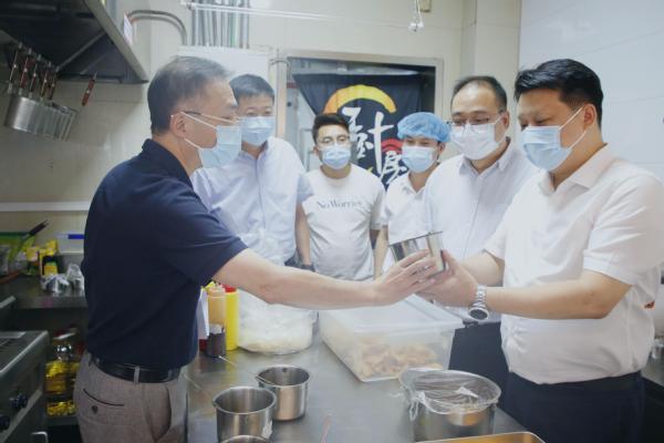 检查组一行先后深入两校区所有餐厅(档口)的粗加工间、烹饪间、洗消间、经营窗口等关键区域,对照上级要求,围绕环境卫生、食品安全、消防安全等展开全链条检视,详细查阅食材溯源台账、清洁消杀记录、食品留样等,并与有关负责人就餐饮保障工作展开深度交流。
