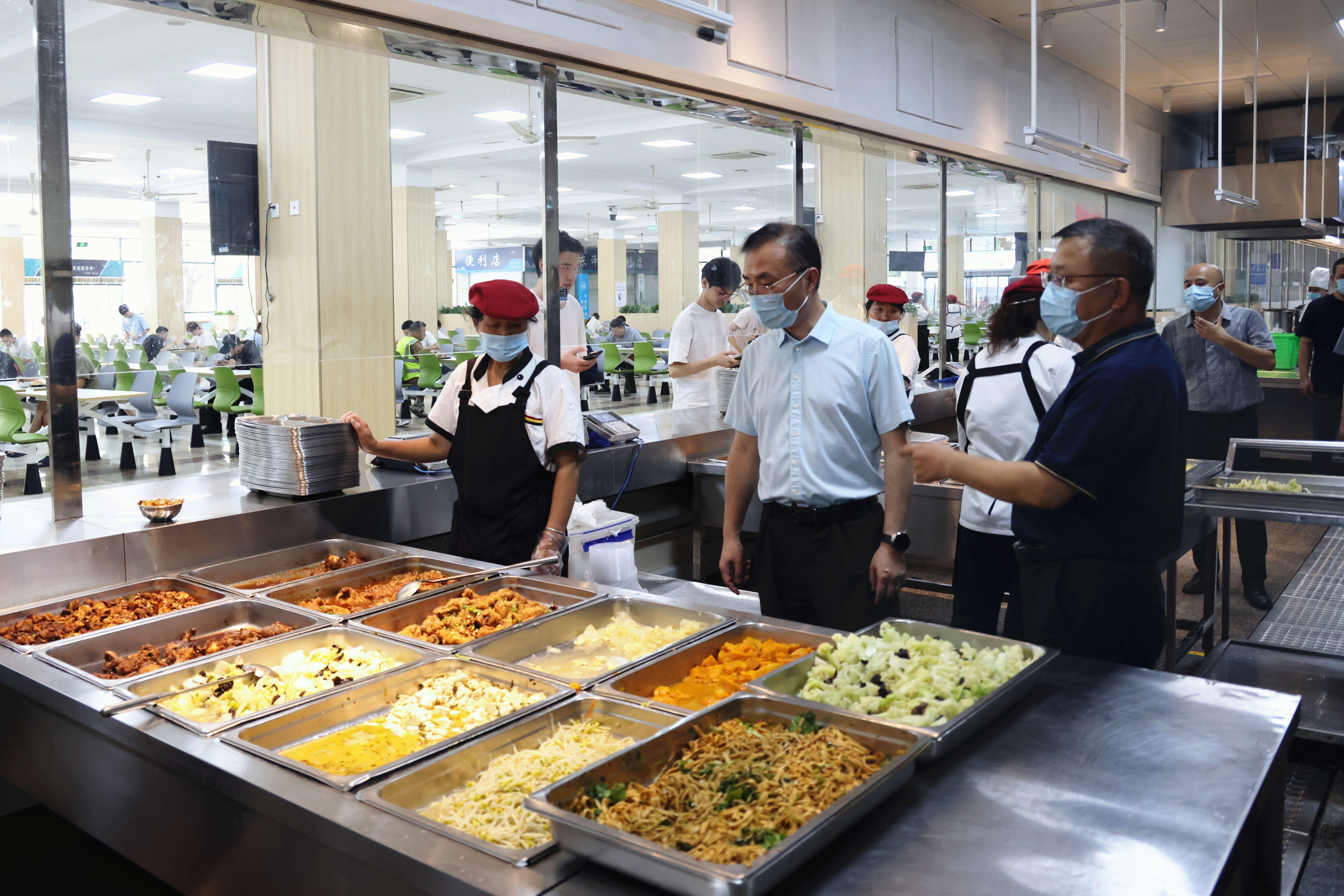 校领导一行先后到消控室、校园110指挥中心、学生公寓、教学楼、食堂和校内施工场地等重点部位、重点场所检查,详细了解两校区暑期运行管理和服务保障,校园施工安全、消防安全、食品安全管理和校园周边安全等情况。