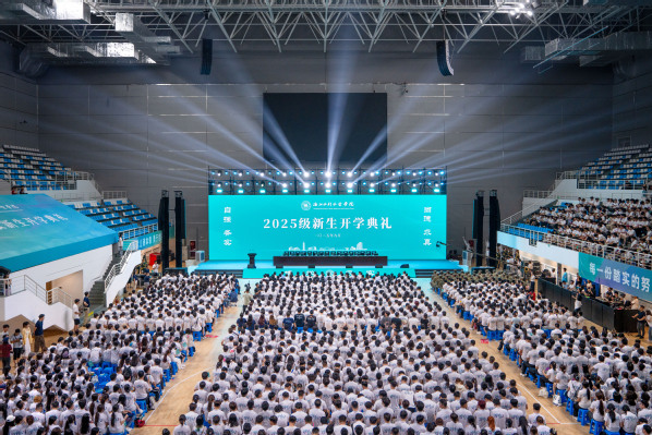 9月16日,学校2025级新生开学典礼在南浔校区体育馆举行。全体校领导,各二级学院、各职能部门负责人,新生班主任、辅导员及全体2025级新生参加典礼。典礼由校党委副书记唐远彤主持。典礼在庄严的国歌声中拉开序幕。