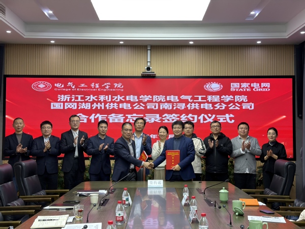 11月19日,电气学院与国网湖州供电公司南浔供电分公司举行校企合作签约仪式,双方将以共建“劳模工作室”为核心平台,全面推动在人才培养、精神传承与科研创新等方面的深度融合。南浔供电分公司总经理钦伟勋、党委书记柳扬,国网湖州供电公司二级职员邢建旭,电气工程学院院长闫树斌等代表参加。