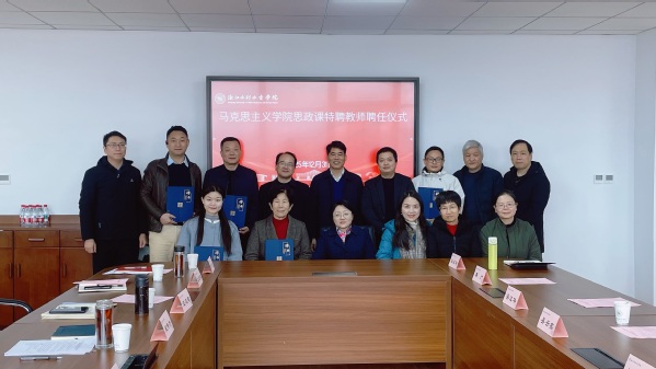 近日,马克思主义学院思政课特聘教师聘任仪式在南浔校区精弘楼举行。校党委委员、宣传部长吴云鑫出席,马克思主义学院党总支书记、院长王伟英,南浔区人大常委会研究室主任宋伟杰,特聘教师代表,以及马院副院长吴卫华、各教研室主任及办公室人员参加。