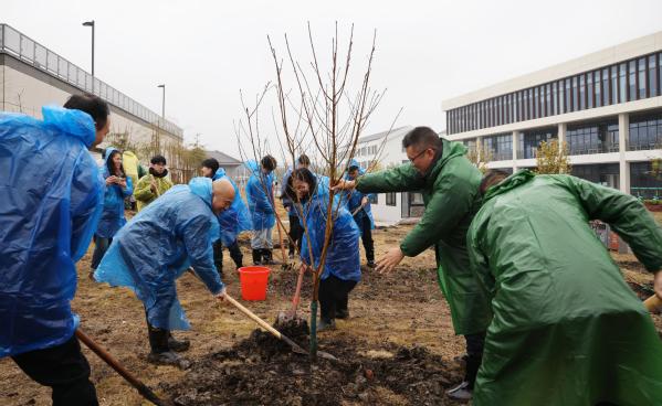 春潮涌动,万象更新。3月17日,校党委书记钱天国、校长万健等全体校领导与师生代表一同,前往南浔校区抽蓄储能实验室旁的“四季果园”,挥锹培土、躬身劳作,共同为果园栽种新苗。