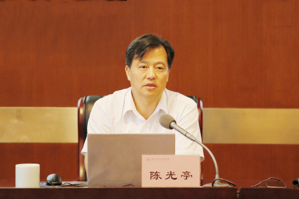 6月7日上午,校长陈光亭以《牢牢把握习近平新时代中国特色社会主义思想世界观和方法论》为题,面向全体中层干部和师生党员代表讲授主题教育专题党课。
