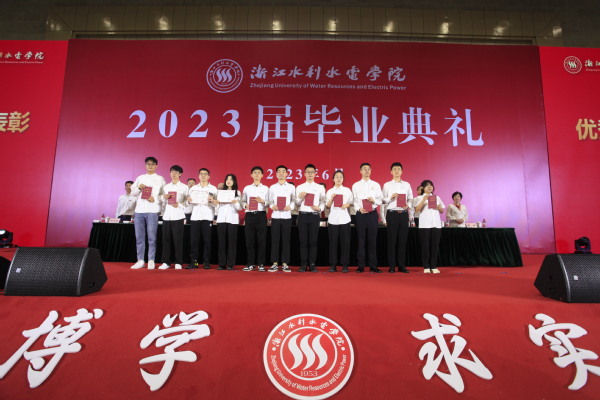 党委副书记吴小英主持典礼。副校长李政辉宣读省级、校级优秀毕业生表彰文件。副校长沈自力宣读2023届校友联络员聘任通知。