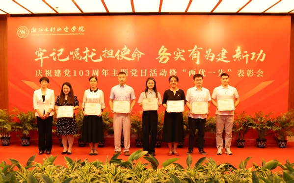 钱天国指出,今天是党的生日,让我们在缅怀历史中牢记使命担当,在展望未来中激发奋进力量,坚持以习近平新时代中国特色社会主义思想为指导、以“贺信精神”为根本遵循,以高质量党建引领学校事业高质量有特色发展,为我省建设勤廉并重的新时代党建高地做出水院贡献。他强调,当前学校事业发展站在了新的起点上,实现学校第二次党代会提出的奋斗目标,需要各基层党组织和全体共产党员发挥示范引领和先锋模范作用,勇于担当、冲锋在前。一是基层党组织要打造成为立德树人的红色堡垒。始终坚持大抓基层鲜明导向,围绕立德树人根本任务,深入实施“红色根脉强基工程”,聚焦制度建设打造规范型基层党组织,聚焦“四个融合”打造引领型基层党组织,聚焦争先创优打造示范型基层党组织,充分发挥基层党组织战斗堡垒作用,把党的政治优势、组织优势、纪律优势和群众工作优势,转化为全面建设高水平应用型大学的发展优势。二是广大党员要努力成为推动学校事业高质量有特色发展的排头兵。选优配强基层党组织书记,加强示范引领,发挥头雁效应。加强教职工党员队伍建设,发挥教职工党员推动高质量有特色发展的标兵作用,激发广大教职工矢志一流、干事创业的积极性和主动性。加强学生党员发展和培养工作,发挥学生党员队伍示范作用,带动全体水院学子在新时代新征程上挺膺担当、报效祖国。三是党务干部要努力当好学校党建工作的组织者、推动者、实践者。政治素质要过硬,广大党务工作者要把讲政治作为一切工作的首要要求,做到政治上绝对可靠、对党绝对忠诚,确保党建工作各项任务不折不扣落实到位,自觉服从和服务高质量有特色发展大局。业务能力要过硬,自觉用党的创新理论指导党务工作,勤学习、善思考、重实践,努力成为党务工作的行家里手。纪律作风要过硬,加强党纪学习教育,把纪律建设和作风建设摆在突出位置,自觉校准价值坐标,筑牢思想防线,用实际行动树立党务工作者清正廉洁的良好形象。