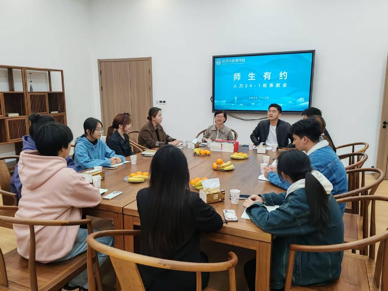 11月20日下午,南浔校区图书馆703会议室内茶香阵阵,沁人心脾。校党委副书记唐远彤和经管学院人力24-1班同学相约茶叙,以“畅想大学生活 努力追逐梦想”为主题开展交流探讨。
