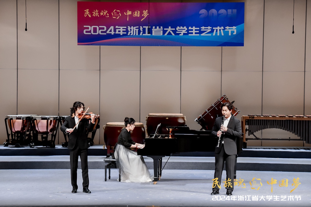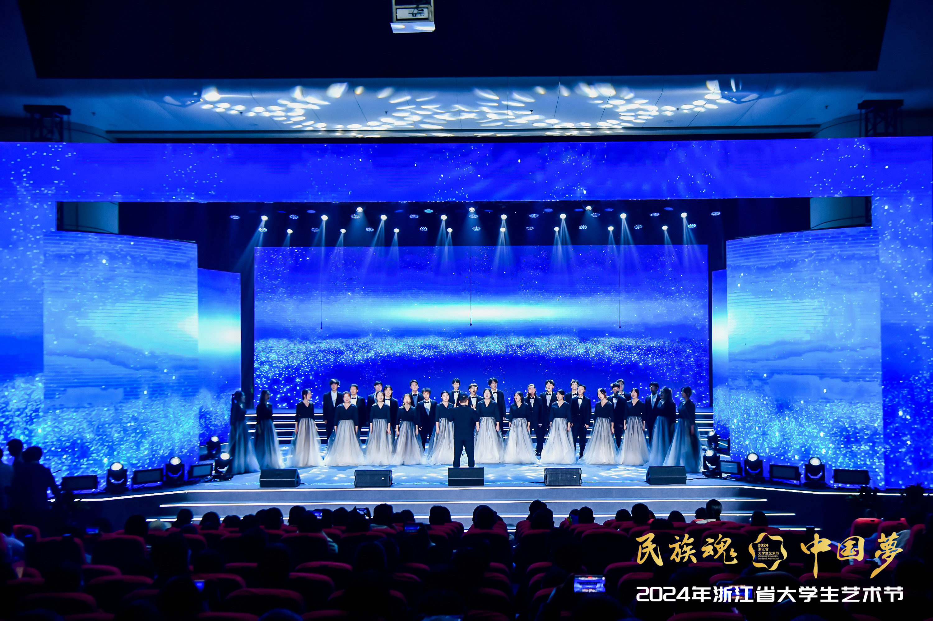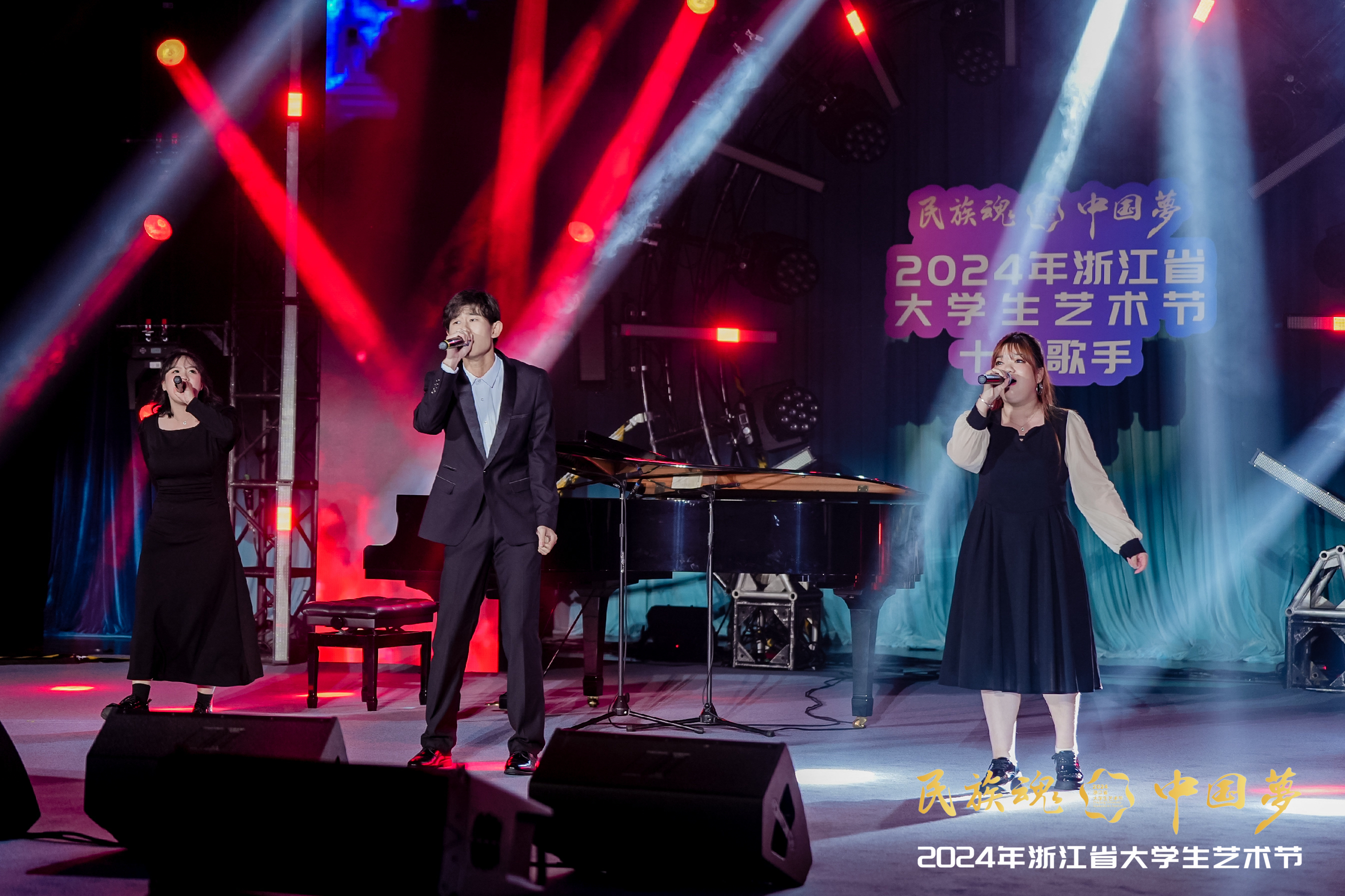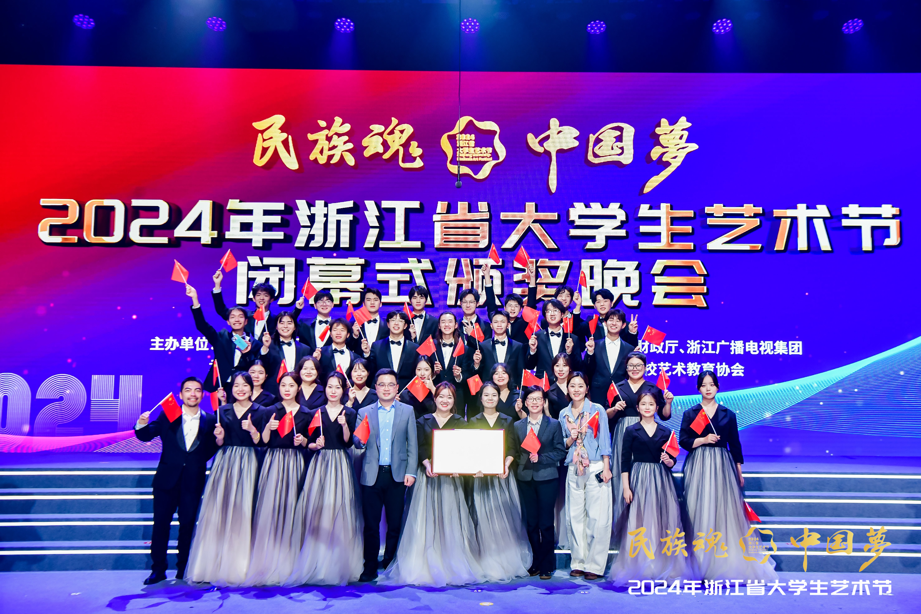 近日,由省教育厅、省文旅厅、团省委、省财政厅、省广电集团共同主办的2024年浙江省大学生艺术节圆满落幕。本次省大艺节以“民族魂•中国梦”为主题,共收到来自全省100所高校选送的器乐、声乐及十佳歌手作品653个,其中167个作品入围现场展演。365完美共选送8个作品参赛,其中4个作品入围现场展演并有1个作品参加闭幕式晚会现场演出,共获一等奖3项、二等奖2项、校园十佳歌手大赛优秀歌手奖1项,学校荣获“优秀组织奖”。校党委副书记唐远彤作为嘉宾出席闭幕式颁奖晚会并和参赛师生代表合影留念。
