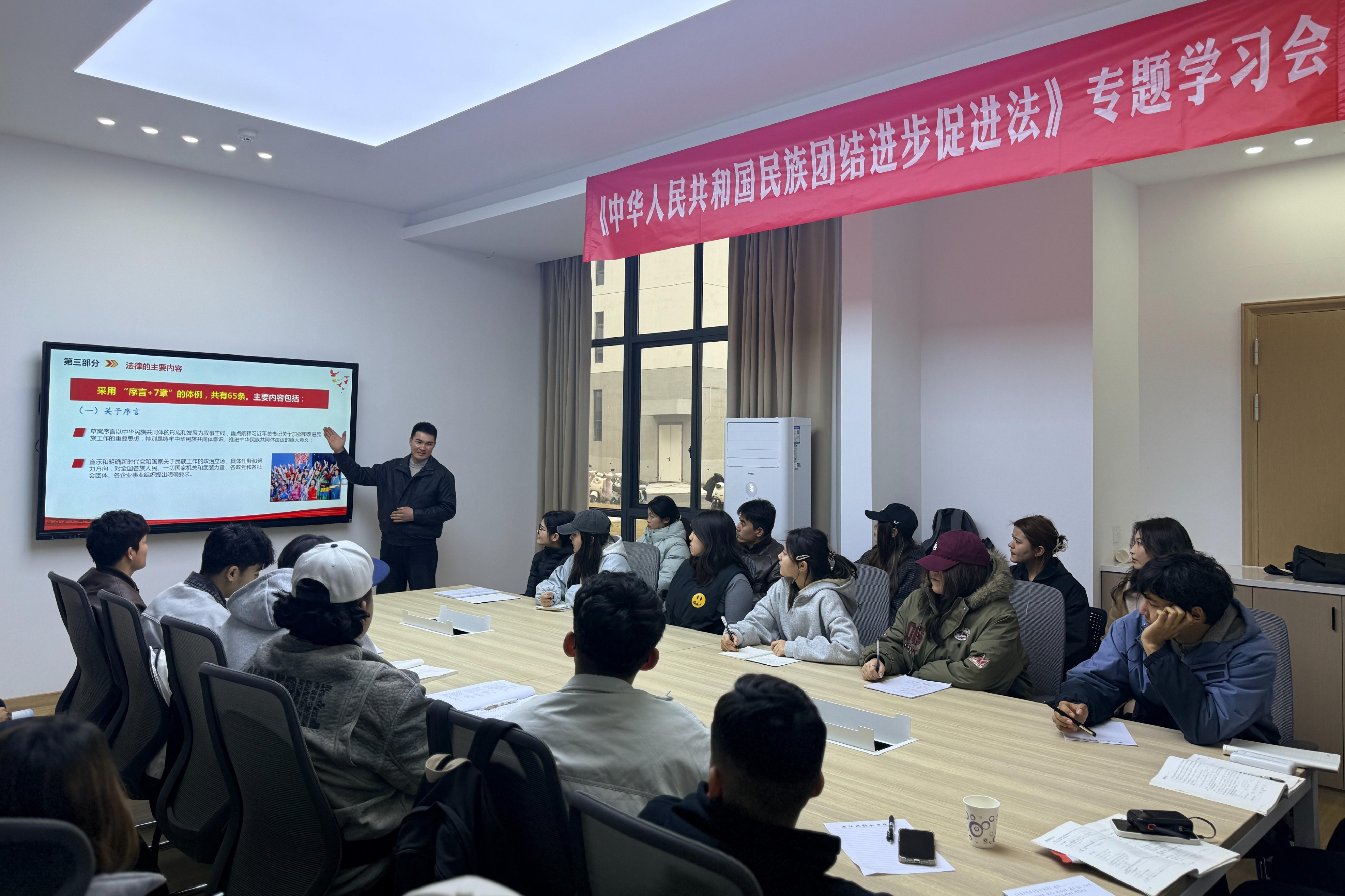 3月19日,学校组织全校各民族学生代表开展《中华人民共和国民族团结进步促进法》专题学习活动,以法治思想为引领,深化民族团结进步教育,凝聚青年学子奋进力量。