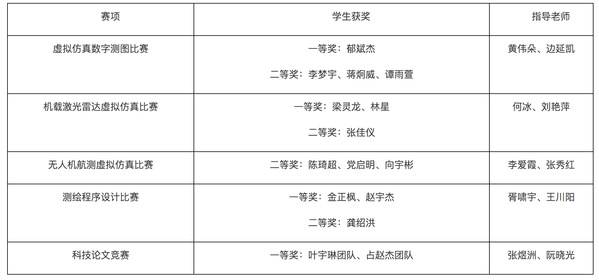 学校高度重视该项赛事,测市学院狠抓落实,在教学开放月期间组织参赛选手参加校赛选拔,并组建了包括黄伟朵、边延凯、何冰、刘艳萍、胥啸宇、王川阳、李爱霞、张秀红、张煜洲、阮晓光等在内的指导教师团队。共参加了虚拟仿真数字测图比赛(4组)、机载激光雷达虚拟仿真比赛(4组)、测绘程序设计比赛(4组)、无人机航测虚拟仿真比赛(4组)、科技论文竞赛(6组)等五个模块的比赛。大赛获奖比率分别为特等奖5%、一等奖10%、二等奖15%。