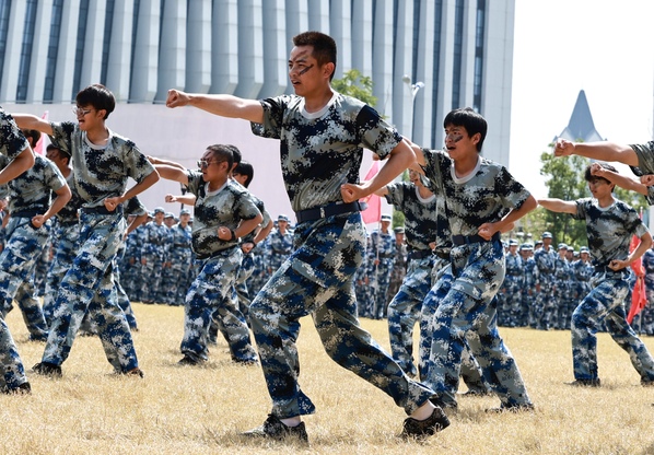 汇报表演中,各新生方阵昂首挺胸,英姿勃发,步履坚定,神采飞扬,以整齐划一的步伐、刚劲有力的摆臂、清脆嘹亮的口号,展现了水院学子热情饱满的精神风貌。