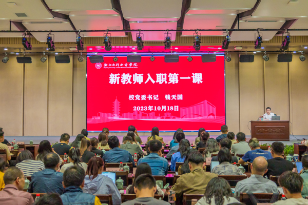10月18日,党委书记钱天国在南浔校区为新教师讲授“入职第一课”。他从讲述同为“水院人”的缘分和解读“水院共同体”入手,围绕“水利水电”“立德树人”“师德师风”“高质量、有特色”等关键词,与新教师进行了一次促膝长谈,带领大家深刻认识水院人共同的传统、共同的使命和共同的愿景。