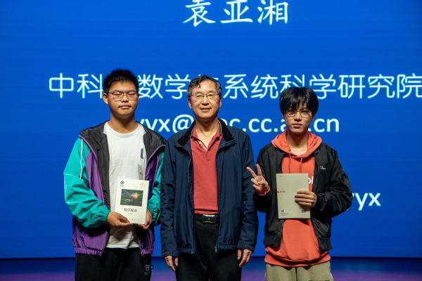 袁亚湘院士以扎实深厚的专业功底和风趣幽默的谈吐,为大家带来了一场干货满满、精彩纷呈的科普讲座,赢得在座师生阵阵热烈的掌声。交流互动环节,同学们积极踊跃发言提问,袁亚湘院士一一给予耐心、细致地解答,并赠送亲笔签名书籍,勉励同学们努力学习数学,积极投身科研,为祖国发展贡献青春力量。