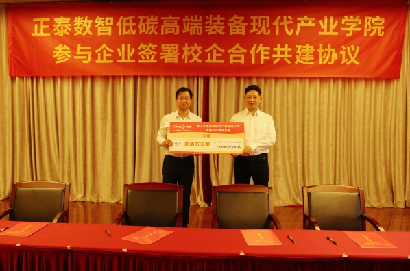 李政辉代表学校与杭州众能光电科技有限公司、碳控科技(杭州)有限公司、杭州国电能源环境设计研究院签署合作共建协议。陈光亭、李丰和黄永忠见证签约。陈光亭代表学校接受正泰中自公司捐赠。电气工程学院院长罗云霞介绍了现代产业学院建设现状与发展规划。