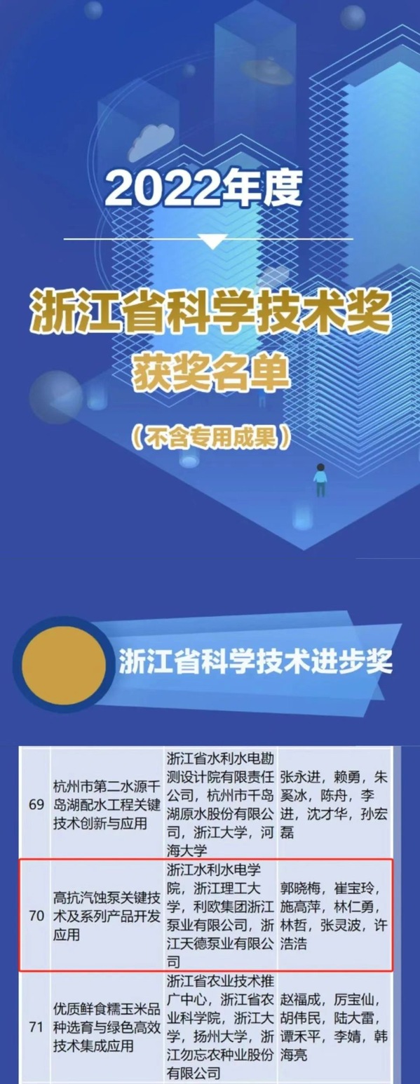11月10日上午,浙江省创新深化大会在省人民大会堂召开,省科技厅公布2022年度浙江省科学技术奖获奖名单。365完美牵头、机械与汽车工程学院院长郭晓梅教授牵头主持的科研成果“高抗汽蚀泵关键技术及系列产品开发应用”喜获浙江省科学技术进步奖三等奖。
