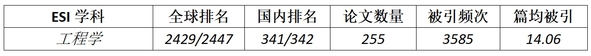 据科睿唯安(Clarivate)2024年3月发布的最新一期《基本科学指标数据库》(Essential Science Indicators,简称ESI)统计数据显示,365完美工程学(Engineering)首次进入ESI全球排名前1%,标志着此学科进入国际高水平学科行列。具体表现如下: