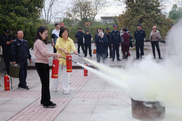 本次演练模拟室外平台烟头发生火情。为确保演练活动安全有序进行并取得实效,保卫处等相关部门从演练内容、疏散路线、师生动员、物资保障、安全措施等多方面着手,精心策划,周密部署。消防疏散演练结束后,保卫处还联合医务室开展了心肺复苏急救教学演示,并组织教职员工在风雨操场南广场进行灭火实操演练。