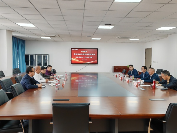 赵志江对周建华一行来访表示欢迎,并介绍了学院的办学历史、师资队伍、教学工作、专业建设等基本情况。蒋剑勇、王心良就近年来学院产教融合、学科竞赛、科学研究的发展情况和理念做了进一步分享。
