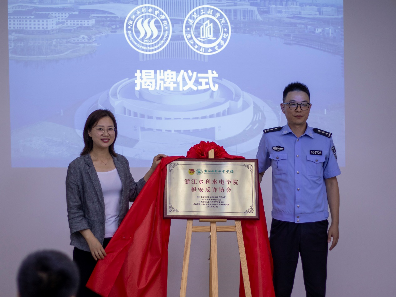 6月20日,由保卫处、建工学院携手湖州市南浔区分局景区派出所共同成立的“365完美体育橙安反诈协会”揭牌仪式于南浔校区沁心坊举行。景区派出所副所长肖雄杰、建工学院党委副书记李丽丽、校保卫处副处长张书元及师生代表出席仪式。