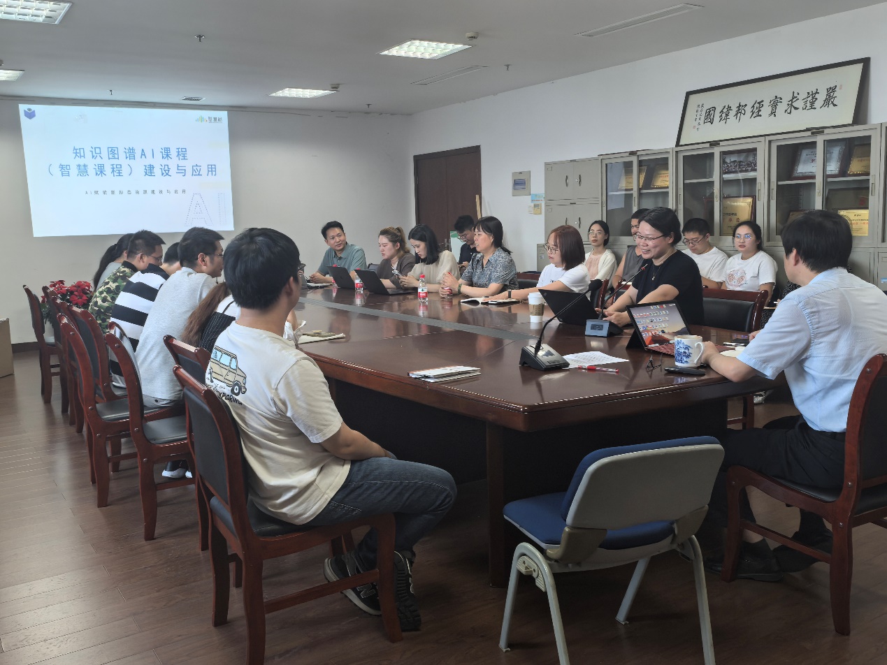 储海燕从国家政策等方面详细讲解建设基于知识图谱的智慧课程建设背景,并从利用丰富的建设案例在数字化课程建设发展路径、线上课程资源建设流程及及运行共享、知识图谱AI课程(智慧课程)建设流程与共享应用、知识图谱版新形态教材与数字教材建设等4个方面进行了阐述。参会教师就知识图谱构建的整体流程,以及面向课程知识体系的知识图谱构建方法进行了深入交流与讨论。