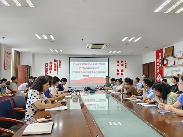 自党二十届三中全会胜利召开以来,机械学院全体师生通过多种形式深入学习宣传贯彻,把学习贯彻党的二十届三中全会精神同自身工作任务结合起来,以“闯”的精神、“拼”的劲头、“干”的作风,锚定顺利通过审核评估与成功“申硕”两大重点工作,为加快推进学院各项事业高质量发展作出积极贡献。
