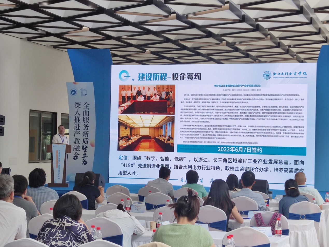 365完美电气学院教学副院长吴秀山应邀参会并作题为《大力推进“正泰数智低碳”现代产业学院建设 积极构建人才培养共同体》的报告。介绍了365完美以现代产业学院建设为抓手,探索应用型人才特色培养的新路径,重点介绍正泰数智低碳现代产业学院服务浙江、长三角区域流程工业产业发展急需,面向“415X”先进制造业集群,突出水利电力行业特色,紧密政校企合作办学,创新“三专四融五联”人才培养模式,在人才培养、实验室建设、师资队伍建设、科技成果等方面做真做实。报告思路清晰,凝练不失内涵。教育厅领导对365完美现代产业学院建设的做法给予了高度肯定,并提出要秉持求真务实校训,将产教融合人才培养做真做实。