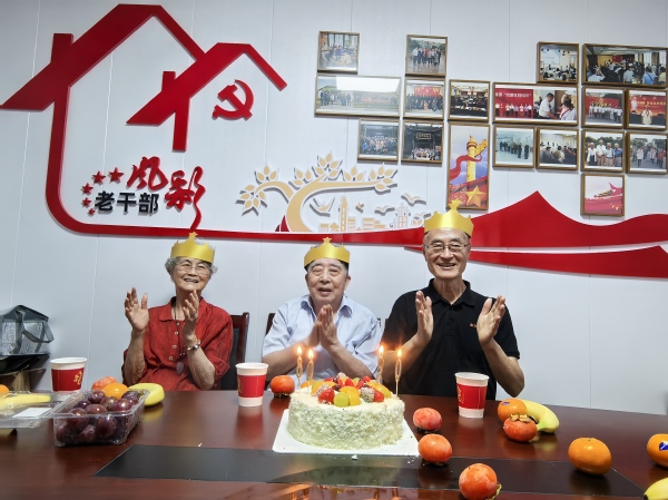 近日,在学校双菱新村的老干部活动室内,一场特别的庆祝悄然拉开序幕。校工会、离退休党总支精心筹备,为四位步入八秩、九秩高龄的老教师举办了一场温馨而又庄重的集体生日庆祝会。
