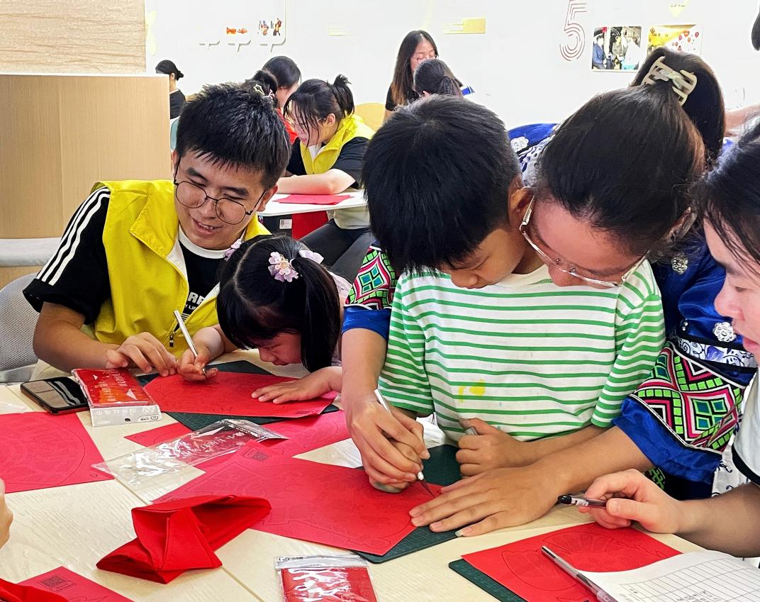 活动中,身着民族服饰的志愿者们向孩子们详细介绍了剪纸这一中国传统民间艺术的悠久历史和深厚文化底蕴。一张红纸、一把剪刀、一双巧手、一份匠心,孩子们在动手实践中感受到非遗文化的魅力,体验到剪纸的乐趣,进一步坚定了居民们“中华民族一家亲,同心共筑中国梦”的美好心愿。“剪纸有点难,但是在哥哥姐姐们的帮助下,我们独立完成了自己的剪纸作品,真的很开心!”参加活动的小朋友开心地说道。