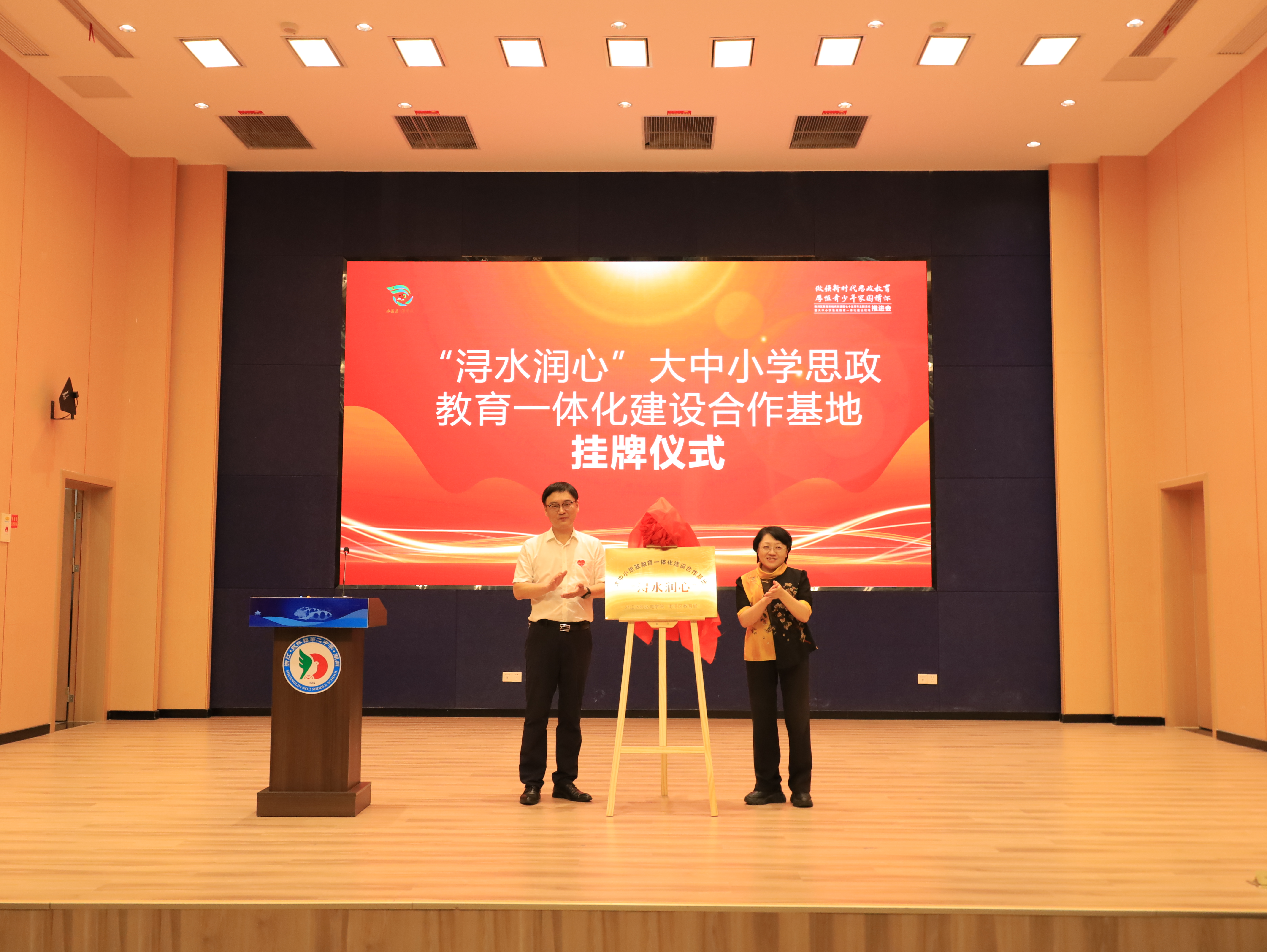 会上,王伟英与姚明星共同为“浔水润心”大中小学思政教育一体化建设合作基地揭牌。