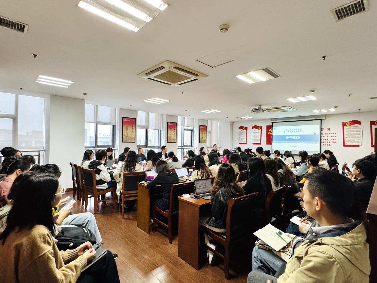 学院党总支书记董平针对全面迎接本科教育教学审核评估工作提出三点要求,一是要进一步统一思想,提高认识。全院要高度重视,强化责任,层层落实,充分认识到审核评估工作的重要性;二是要浓厚氛围,全员投入。评估工作是一盘棋,学院管理人员与各教研室要加强协调,及时沟通,通力合作,确保相关工作顺利进行。三是要把握时机,展现成果。要把审核评估当作展现我们办学成效和人才培养成果的平台。董平强调,要以本次审核评估工作为契机,以评促建、以评促改、以评促管、以评促强,提升学院的本科教育教学工作水平,提高本科人才培养质量。