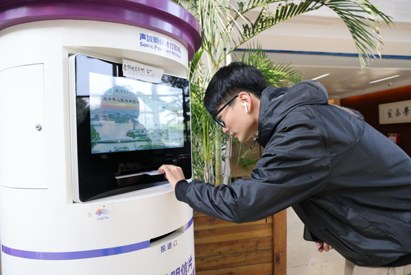 除了观看邮票,师生们在现场还通过邮政公司放置的“时光机”,打印制作专属自己的明信片,互动体验得到大家一致好评。